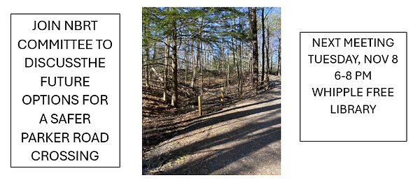 Access the newest part of the NBRT via Riverside Drive, across the street from the Berry Good Blueberry Farm on Parker Road.